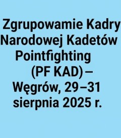 Uwaga: AKTUALIZACJA TERMINU ZGRUPOWANIA – GIŻYCKO 2025Uprzejmie informujemy, że zgrupowanie Kadry Narodowej Kadetów w formułach Light Contact (LC KAD) i Kick Light (KL KAD), organizowa... czytaj więcej